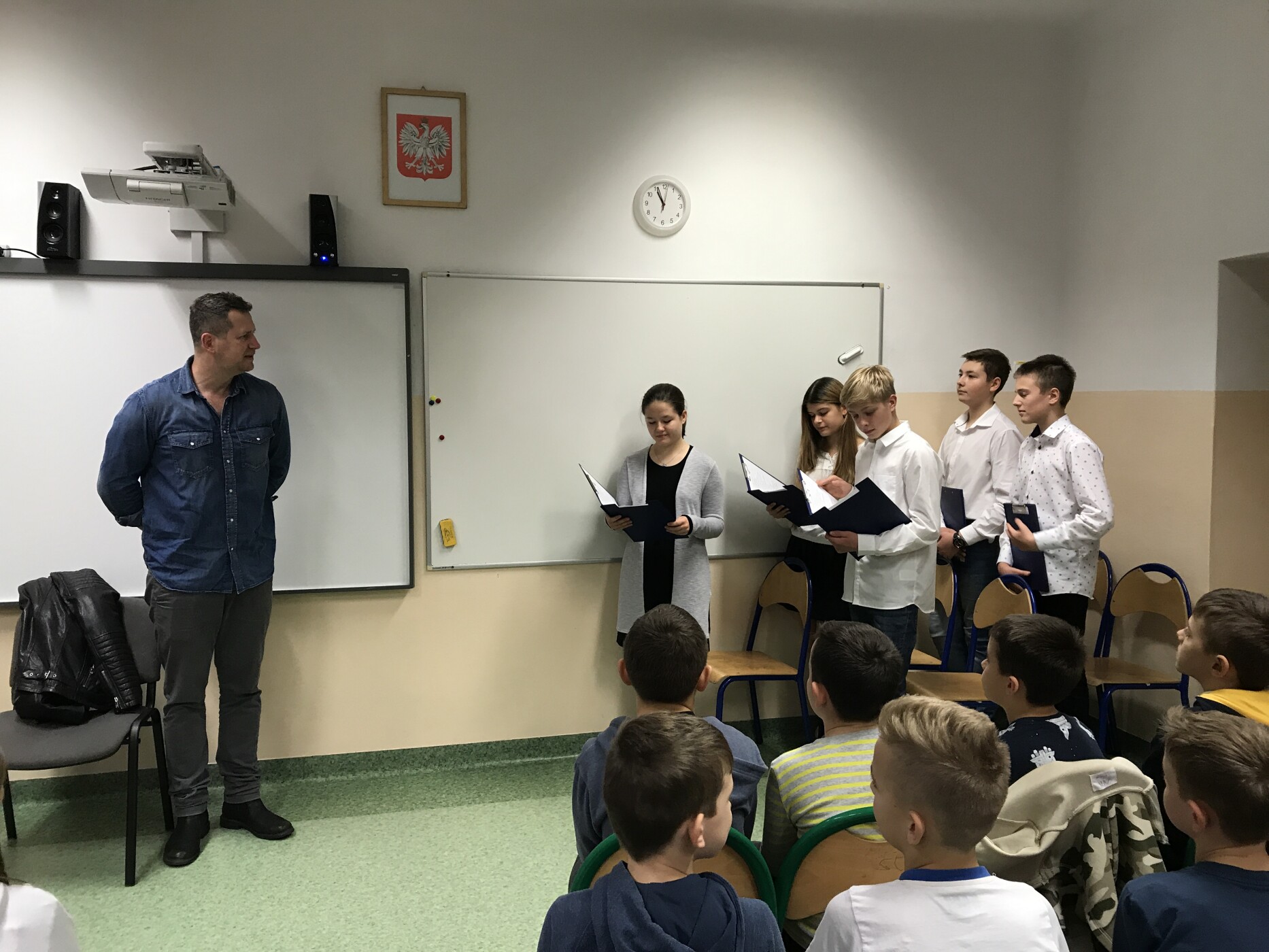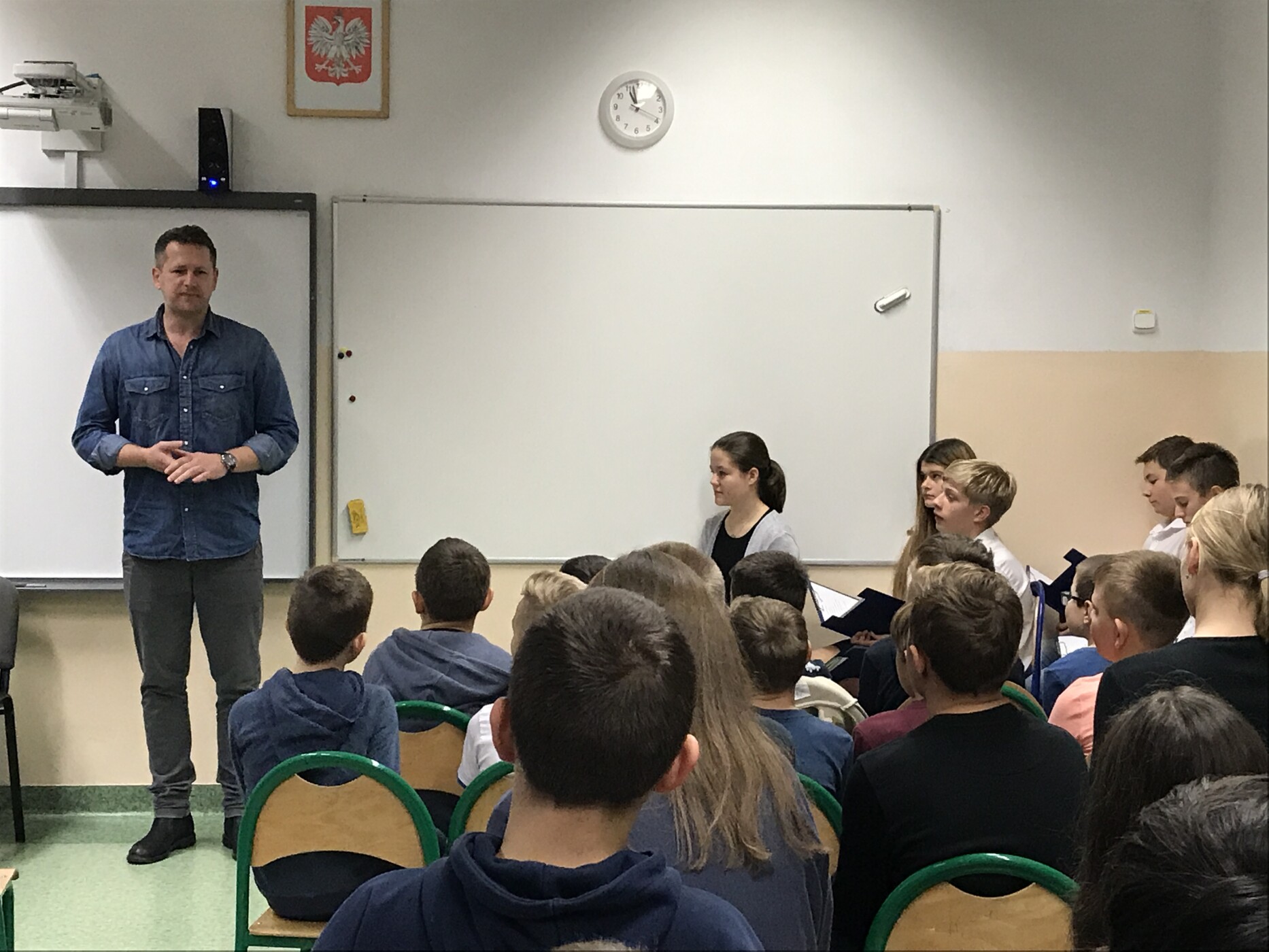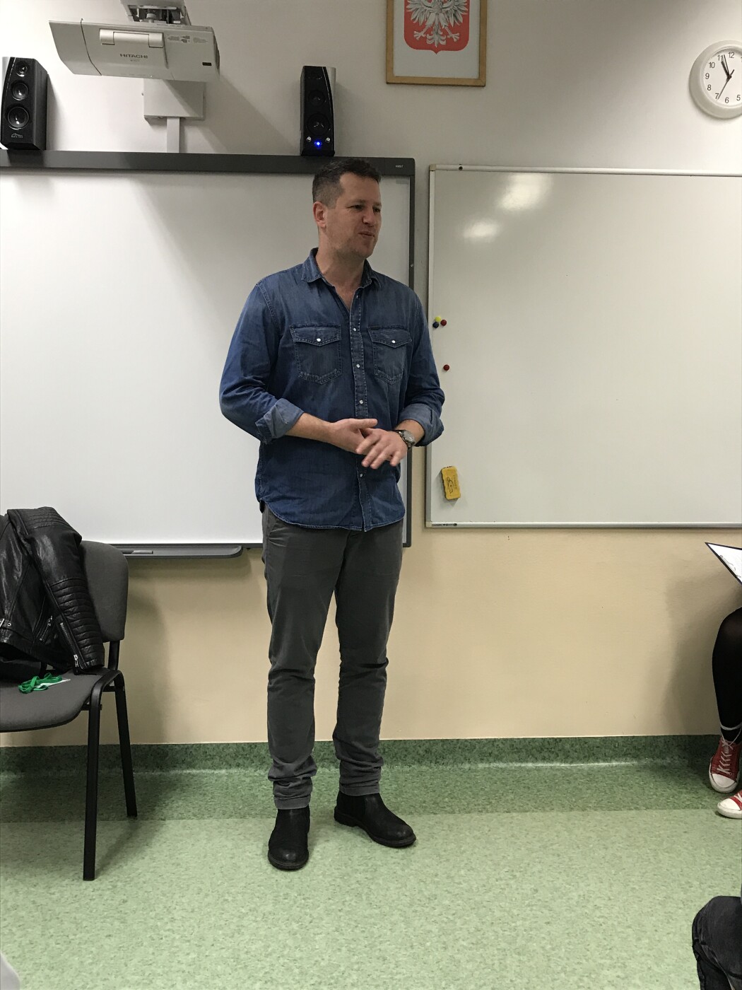 naszej szkoły był aktor teatralny, filmowy i telewizyjny - pan Marcin Piętowski.