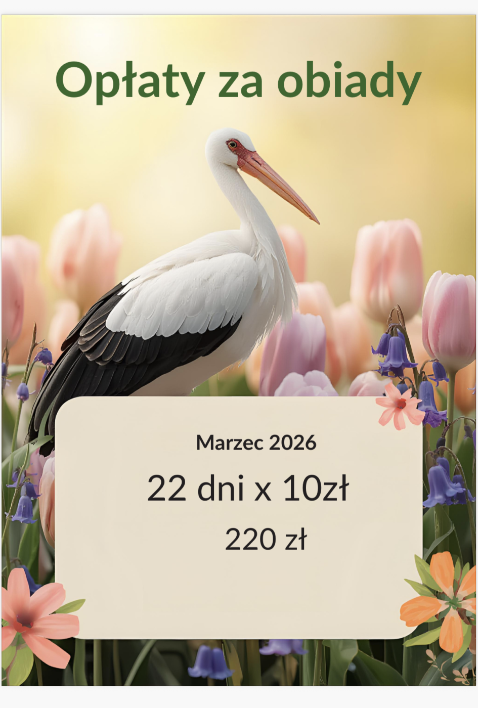Koszt posiłków: obiad – 10,00